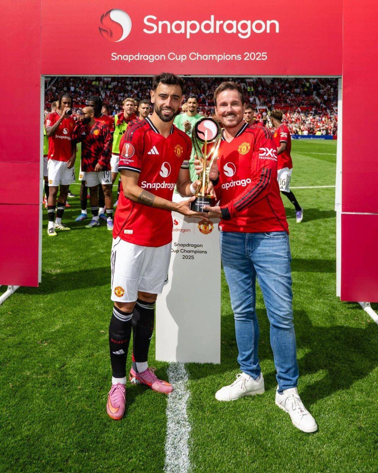 赛前,曼联为效力球队12年的功勋门将德赫亚补办告别仪式,队长布鲁诺·费尔南德斯向他赠送一块纪念其红魔生涯的相框,老特拉福德全场起立致敬。